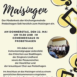 Der Förderkreis der Kirchengemeinde Probsthagen lädt zum alljährlichen Maisingen ein. Herzlich Willkommen!